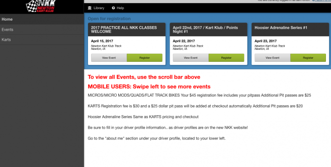 - Pay Cash at the track, to make this quick and easy, create an account at Newtonkartklub.com and sign up for your race once you get to the checkout screen you’re done. Just come to the window and pay cash for your entry.